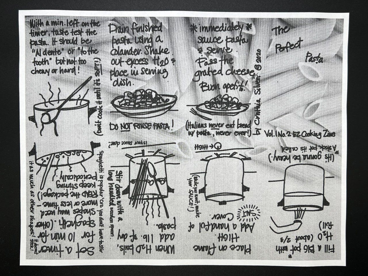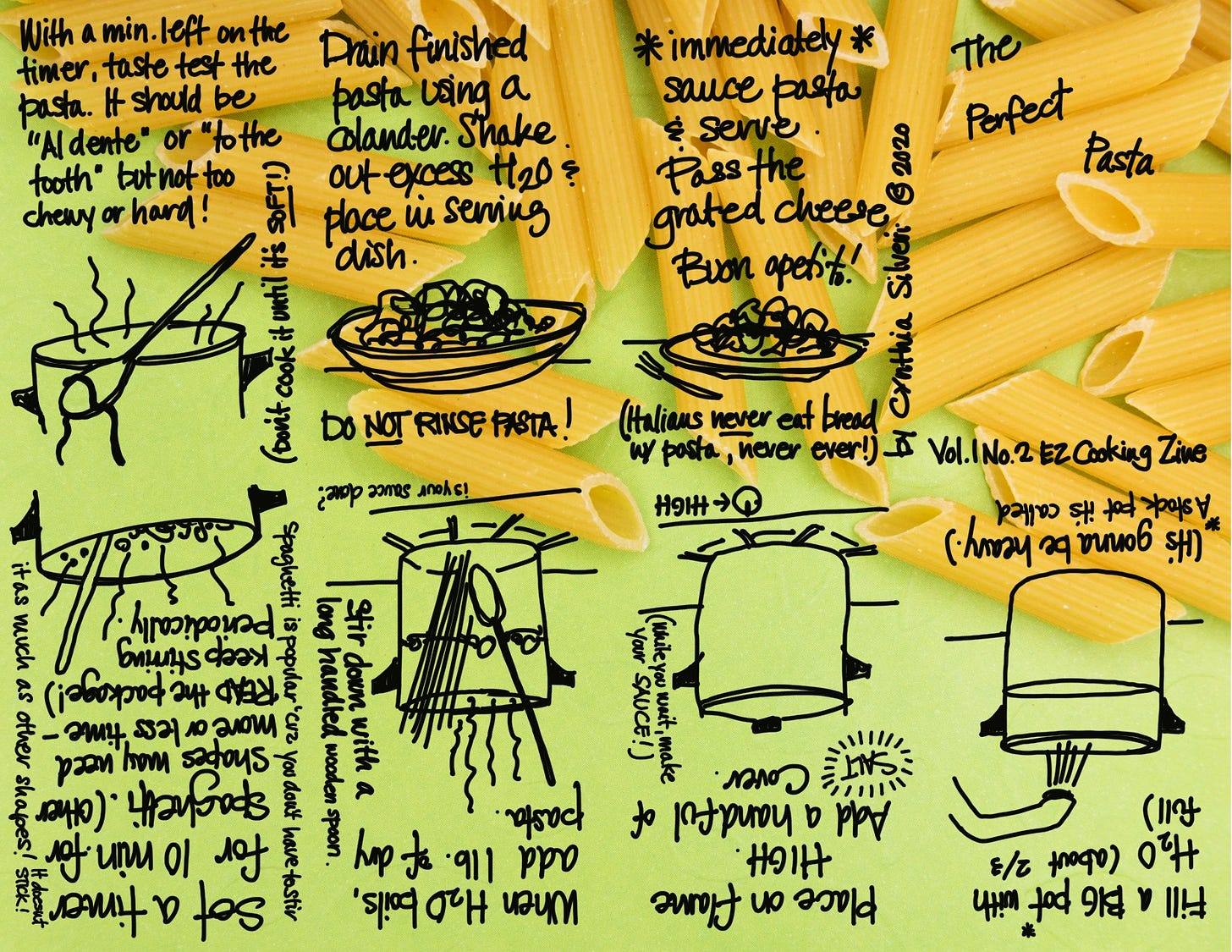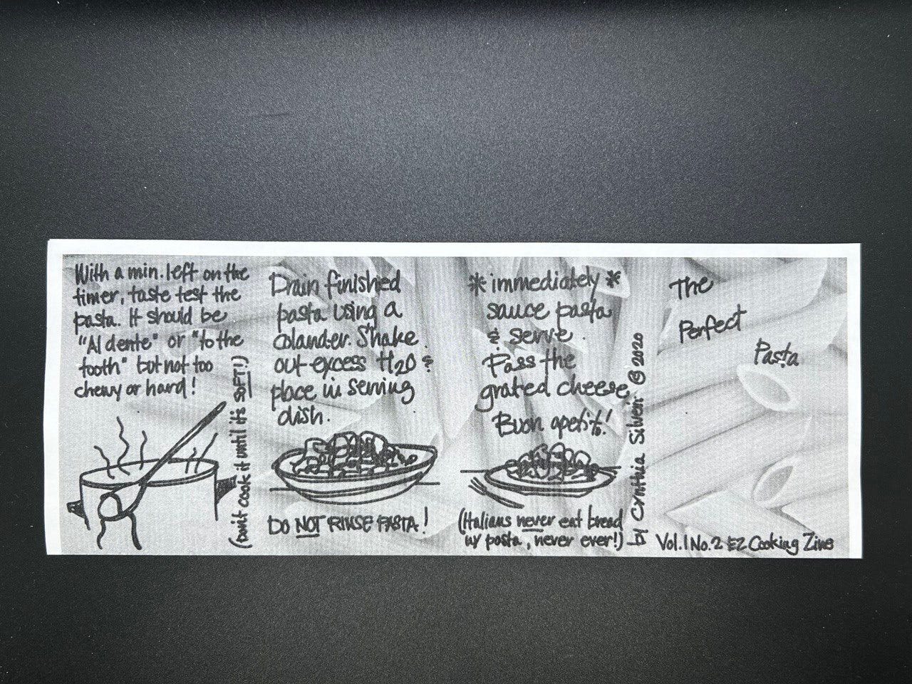 Here are the pdf files (via Dropbox) for The Perfect Hard Boiled Egg and Perfect Pasta, as well as the template to make your own E-zine . Instructions for how to fold it follow.
