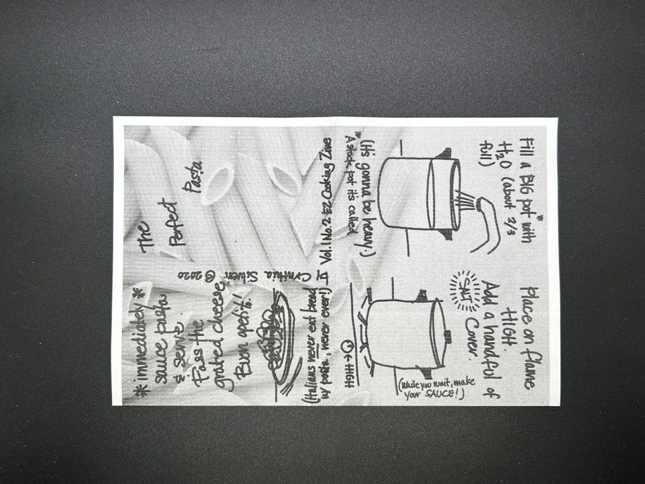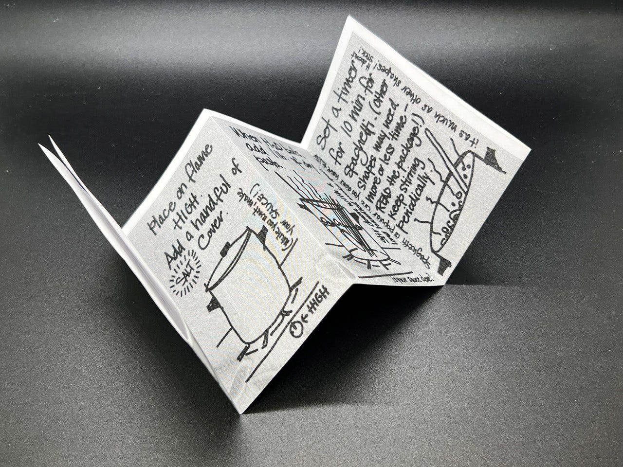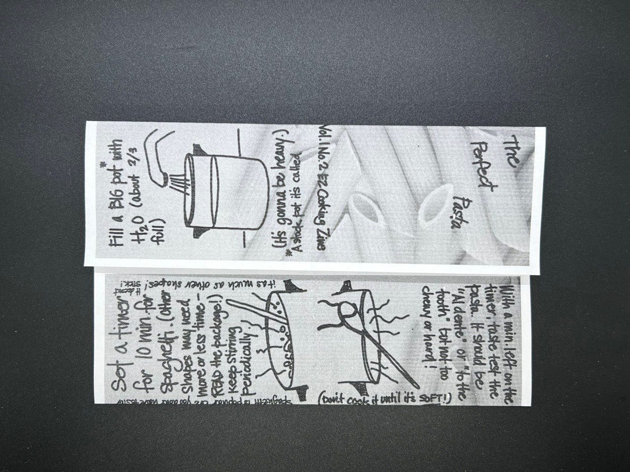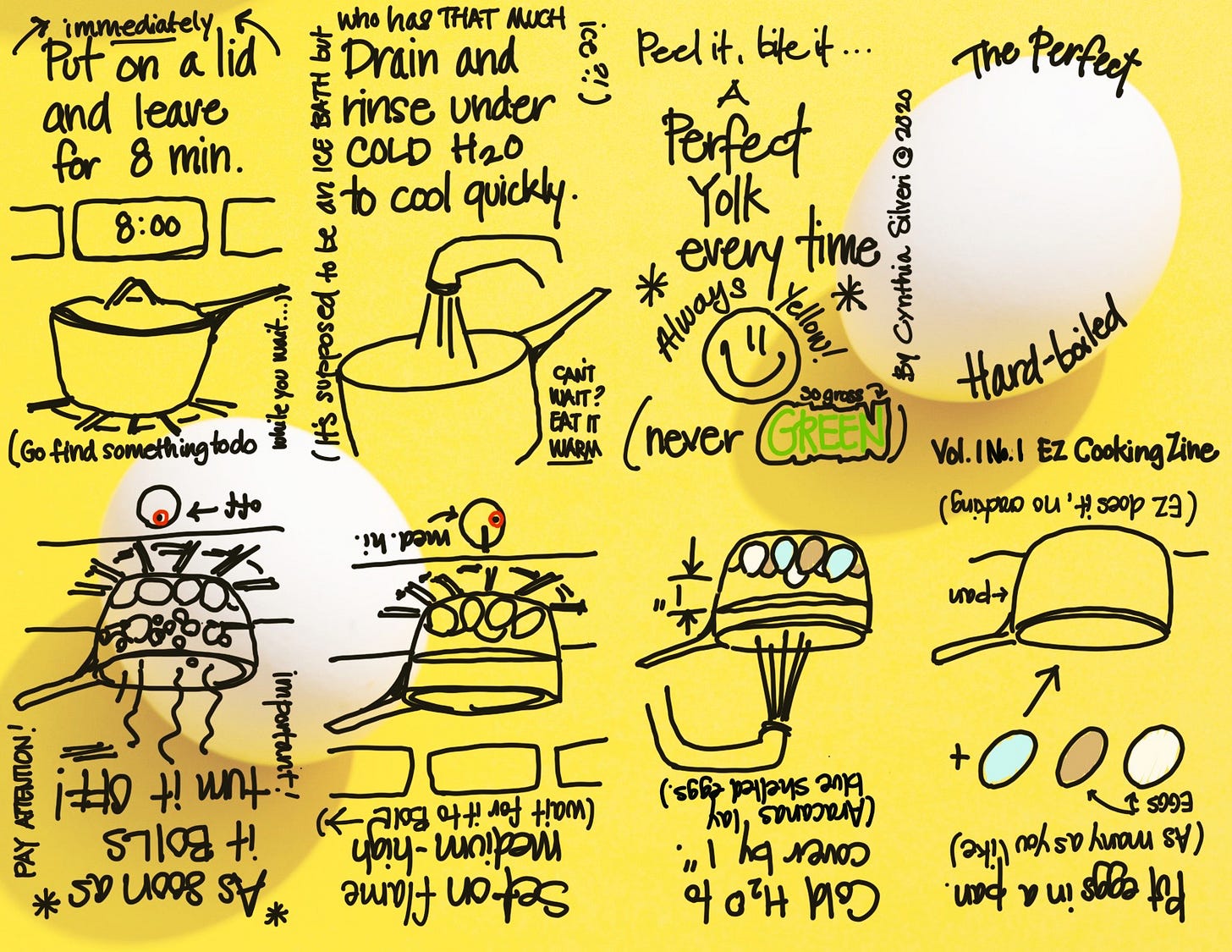 Here are the pdf files (via Dropbox) for The Perfect Hard Boiled Egg and Perfect Pasta, as well as the template to make your own E-zine . Instructions for how to fold it follow.